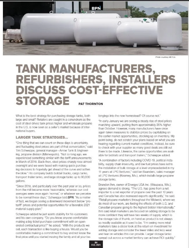 BPN: Tank Manufacturers, Refurbishers, Installers Discuss Cost-Effective Storage by Crystelle Markley | Feb 23, 2021 | Blog Read the full article, which includes SES commentary, here.